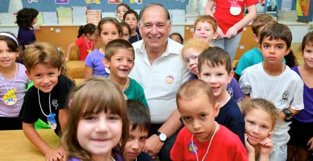 (Yona Yahav, der Bügermeister von Haifa mit Kindern)